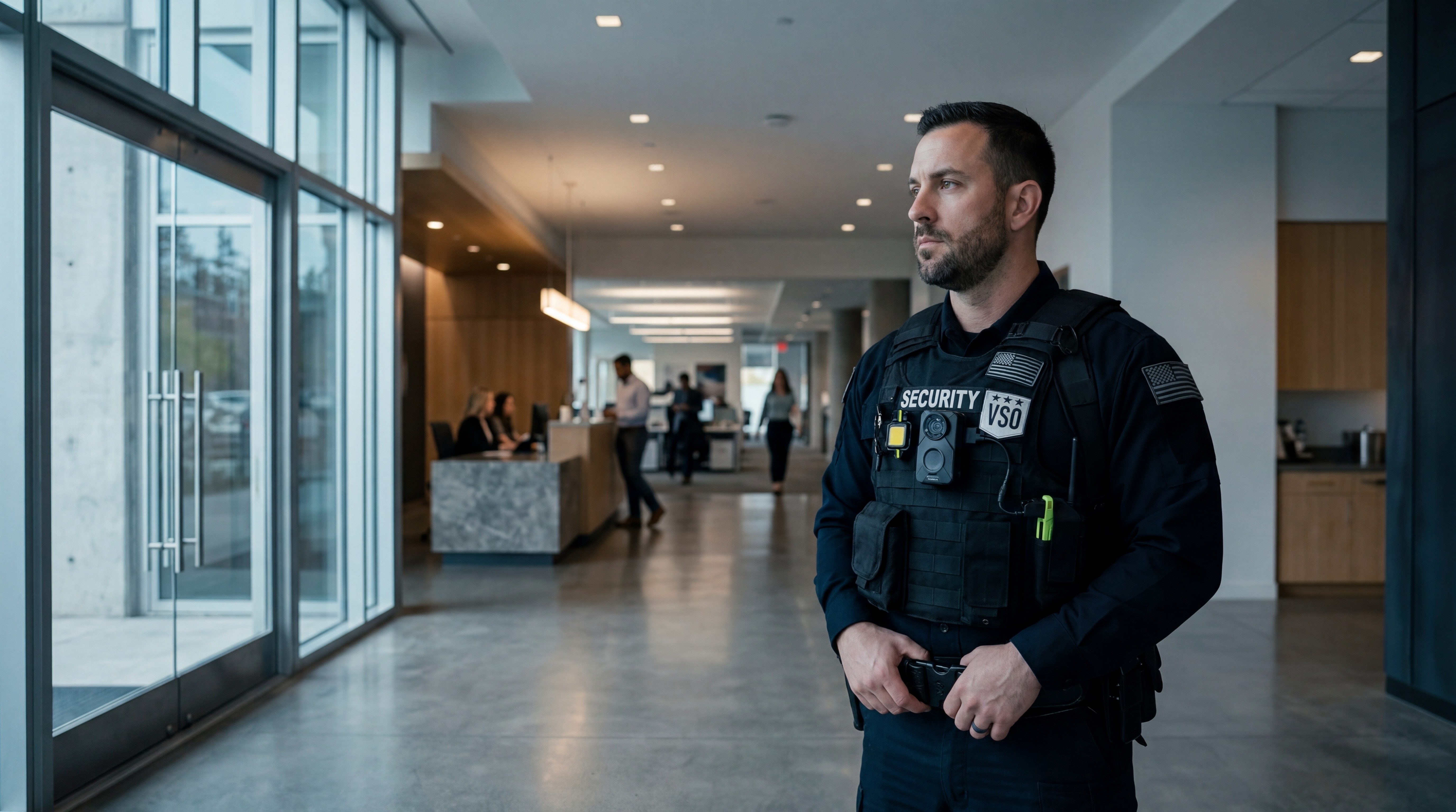 Professional unarmed security guards held to veteran standards. VSO unarmed teams deter threats through visibility and authority — ideal for corporate campuses, retail, residential properties, and access control across Washington State and the Portland metro area.